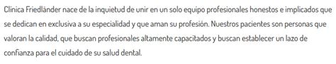 Bienvenidos a Clínica Friedländer. En Clínica Friedländer, ubicada en el corazón de Barcelona, combinamos tecnología de vanguardia con un equipo de profesionales dedicados exclusivamente a sus áreas de especialidad, como ortodoncia, cirugía, periodoncia y endodoncia. Nuestra misión es realizar un excelente diagnóstico para ofrecer tratamientos de calidad y duraderos, priorizando una odontología planificada y personalizada para la satisfacción de cada paciente.