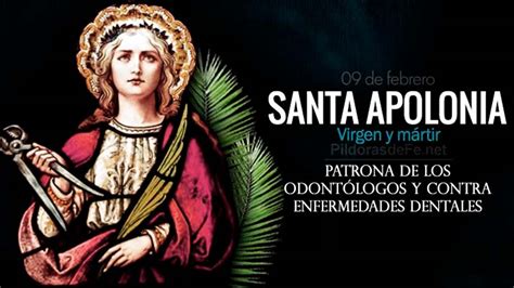 La iconografía de Santa Apolonia la representa con unas pinzas que sostienen un diente o con un collar del que pende un diente de oro. Cada 9 de febrero, el Día del Odontólogo es una ocasión para rendir homenaje a estos profesionales cuya especialidad contribuye al cuidado integral de la salud bucal, que abarca dientes, encías, lengua, paladar, mucosa oral, glándulas salivales y otros órganos.