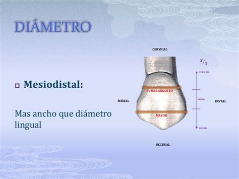 - Diámetro vestíbulolingual: máxima distancia entre las superficies bucal y lingual, obtenida perpendicular al eje longitudinal del diente (Figura 4).