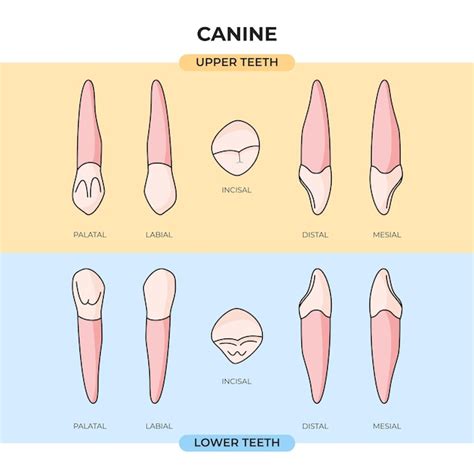 - El perfil lingual del canino inferior está más redondeado que el canino superior.