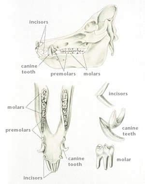 Los cerdos, al igual que otros mamíferos, poseen diferentes tipos de dientes adaptados a sus hábitos alimenticios: