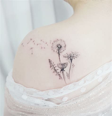 Los tatuajes de diente de león minimalistas suelen presentar las líneas simples y claras de los dientes de león. En este enfoque, las semillas pueden estar representadas por puntos o pequeños círculos, dando una impresión ligera y aireada. El tatuaje realista de diente de león se centra en los detalles de la flor y sus semillas, incorporando sombras y texturas para crear el efecto de una fotografía real dibujada sobre la piel. Los tatuajes geométricos de diente de león combinan la forma natural de la flor con líneas y formas geométricas para crear diseños dinámicos y llamativos.