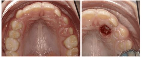 - Sobreelevación anómala de la mucosa vestibular y/o palatina a la inspección y/o palpación.