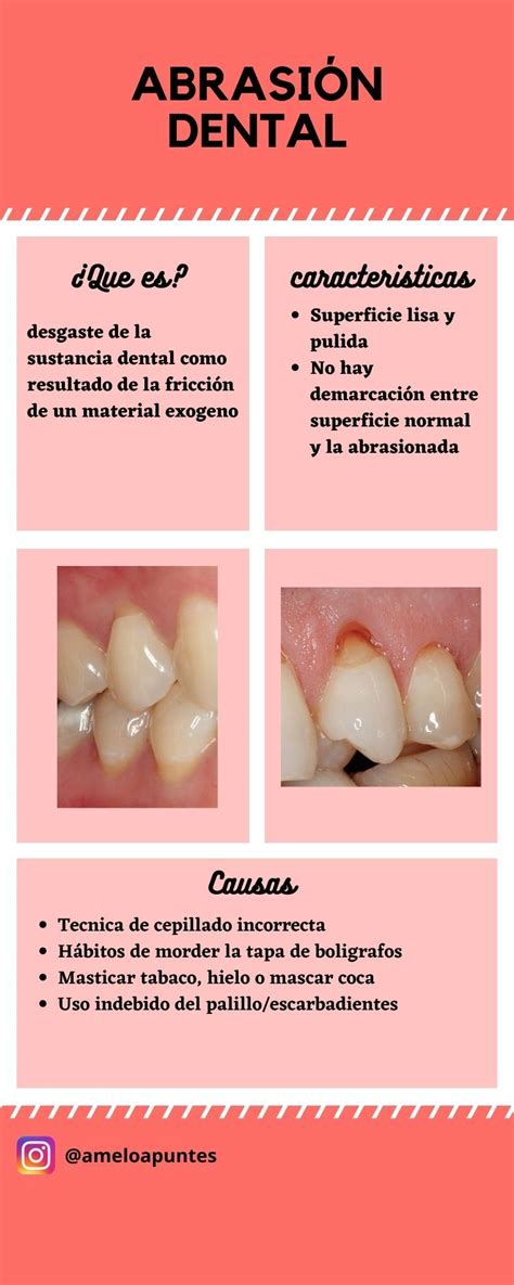 - Sensibilidad dental al comer o beber, es uno de los síntomas más comunes de abrasión dental. Hipersensibilidad dental (sentir dolor al comer o beber alimentos o líquidos fríos o calientes). Sensibilidad dental leve: Molestias ocasionales con alimentos fríos o calientes, especialmente en zona cervical de premolares y molares.