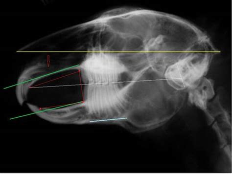 Radiografía de sobrecrecimiento dental en conejo