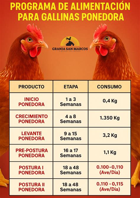 Tabla de Resumen de Alimentación para Gallinas