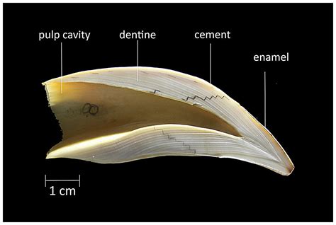Sección sagital del canino superior de un lobo marino sudamericano macho.