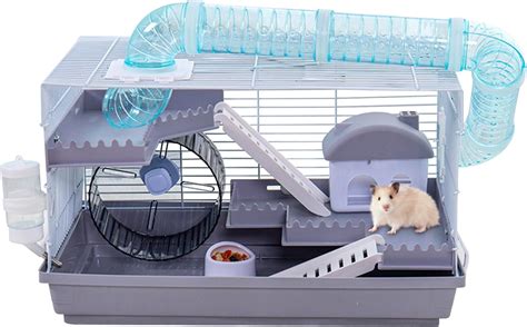 Un hámster necesita una jaula en la que vivir, y aunque no necesitan gran espacio, no debemos comprar una jaula excesivamente pequeña ya que puede causar estrés en nuestro animal. Por lo general, un buen tamaño de jaula oscila entre los 60-70cm de alto x 50-60cm de ancho y 50-60cm de fondo.