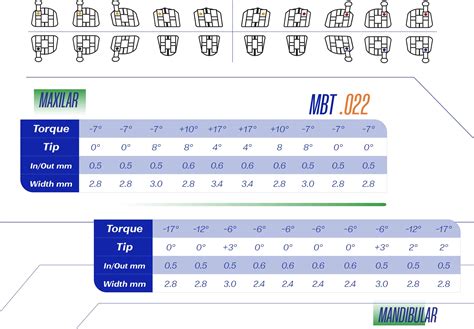La siguiente tabla muestra los valores de referencia para el posicionamiento vertical de brackets según la filosofía MBT: