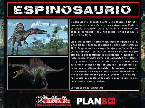 Por último, revisaremos a esta interesante especie. A diferencia de los reptiles mencionados, este sí era propiamente un dinosaurio, específicamente un carnívoro con una vela en la espalda. Era de hábitos semiacuáticos y buscaba alimento en estuarios, manglares, ríos someros y ecosistemas similares, que son sitios de transición entre el agua dulce y agua marina. No era completamente marino, pero se asociaba a estas zonas cercanas al mar y con salinidad considerable. Tenía características que le permitían ser hábil bajo el agua, como proporciones anatómicas apropiadas para el nado, hocico piscívoro para capturar peces y fosas nasales posicionadas atrás de la cabeza.