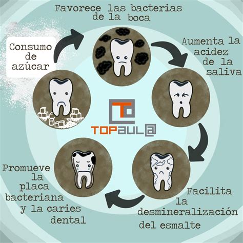 - Aumento de la Placa Bacteriana: Las bacterias se alimentan del azúcar y crean un ácido que ataca los dientes.