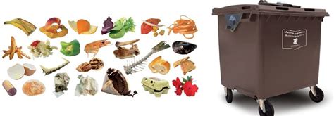 Residuos orgánicos: restos de fruta y verdura, restos de carne y pescado, cáscaras de huevo, marisco y frutos secos y otros restos de comida.