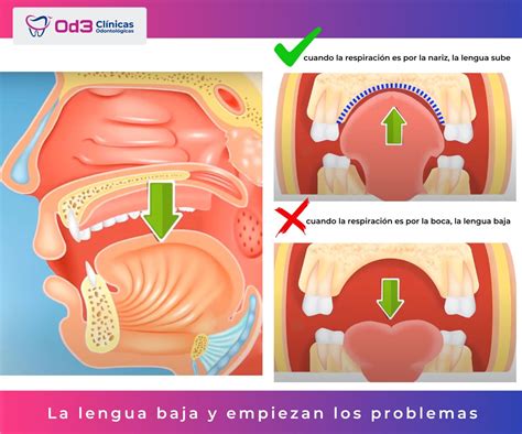 - Anomalías en la estructura facial: Algunas personas pueden experimentar respiración bucal debido a anomalías en la estructura facial, como el retroceso de la mandíbula o la presencia de una lengua grande, que pueden limitar el espacio para la respiración nasal. Reducción de la vía aérea por un maxilar comprimido y estrecho (ya que el paladar es el suelo de la nariz), o una mandíbula retraída y pequeña que limita el paso del aire a la faringe.