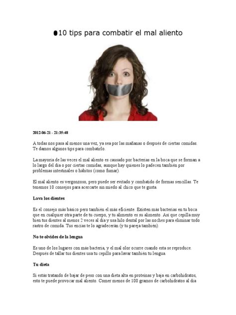 | Alimentos | Moderar el consumo de alimentos olorosos | Cepillarse después de comer |