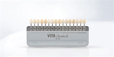 La escala de tonos dentales más utilizada en la actualidad es la escala VITA clásica. Esta escala clasifica los colores según la matriz en A (marrón amarillento), B (amarillo), C (grisáceo) o D (rojizo suave), y según el valor (luminosidad) en 1, 2, 3, 4.