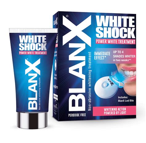 ¿Sueñas con unos dientes blancos y una sonrisa de Hollywood? La pasta de dientes BlanX "White Shock blue formula Intensive Whitening" puede ser la solución. Su fórmula contiene ActiluX®, un innovador activo que se activa con la luz para blanquear los dientes de forma natural.