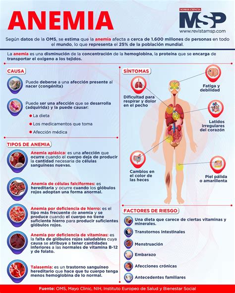 - Anemia por Enfermedades Crónicas: Es un tipo de anemia que ocurre en personas que tienen enfermedades que duran más de un mes, como la infección por VIH, el lupus, la artritis reumatoide, la insuficiencia renal o el cáncer.