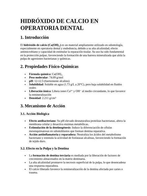 Usos del Hidróxido de Calcio en Odontología
