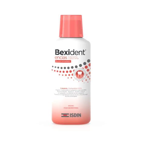 Isdin Bexident Encías colutorio clorhexidina 500 ml te ofrece una potente acción antiséptica gracias a la clorhexidina. Elimina la estructura de la placa bacteriana, impide la formación de nueva placa y elimina las bacterias responsables de su formación.