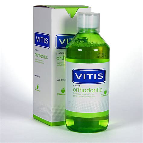 Vitis Orthodontic Colutorio es un enjuague bucal especialmente diseñado para personas con ortodoncia. Su fórmula está desarrollada para proporcionar una higiene bucal completa y específica, adaptada a las necesidades de quienes llevan brackets u otros aparatos ortodónticos. El enjuague bucal garantiza un cuidado completo de la boca, los dientes y las encías durante la intervención de ortodoncia.