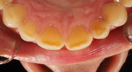 La erosión progresa lentamente y es posible que no se detecte antes de que el paciente sea consciente de la temperatura o la sensibilidad al dulce o las fracturas incisales finas.