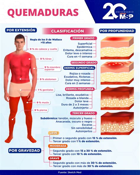 Las quemaduras se clasifican en tres grados según su gravedad: