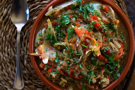 En esta receta no pueden faltar las berenjenas y los pimientos rojos, que las más de las veces vienen acompañados de cebolla y tomate.