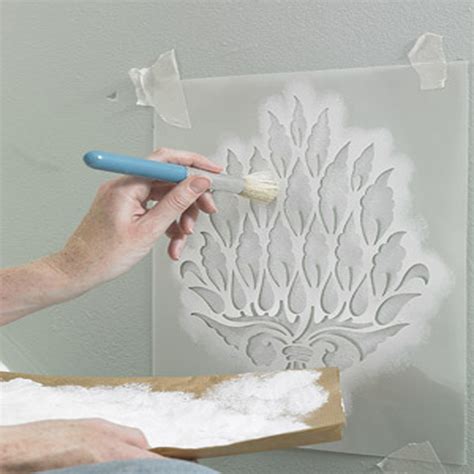 - Carga el cepillo de dientes: Cargar la cerda del pincel con poca pintura,descargar el exceso un poco en papel de cocina ya que si hay mucha pintura esta se puede filtrar por debajo de stencil.