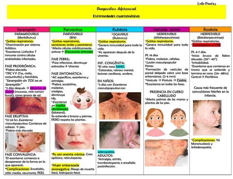 En las tablas siguientes se exponen las causas más frecuentes de exantemas en los niños, así como algunas características clínicas y epidemiológicas que ayudan a su diagnóstico.