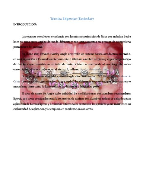 Una de las técnicas utilizadas es la técnica de edgewise, ideada por el Dr. Edward Angle y presentada por primera vez en 1925. También llamada Técnica de Arco de canto. Comercialmente hay toda una extensa gama de aparatología ortodóntica referida a la técnica edgewise.