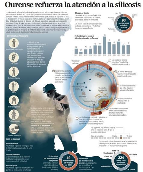 - Silicosis: Enfermedad respiratoria grave, progresiva e irreversible causada por la inhalación de sílice cristalina. Se manifiesta en varias formas: