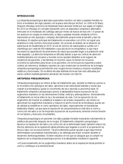 Cuadro I: Resumen del tratamiento ortopédico prequirúrgico.
