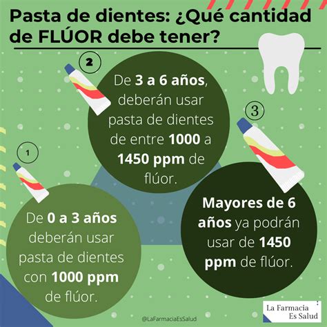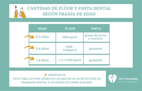 - Del primer diente hasta los 2 años: pastas dentales con 1.000 ppm de flúor. Cantidad de pasta equivalente a un grano de arroz.