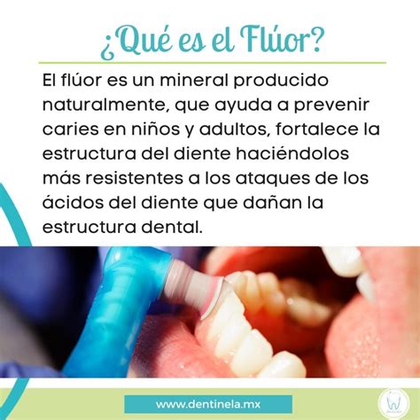 El flúor es un mineral que fortalece, repara y protege el esmalte dental. No obstante, el flúor es un elemento que en su estado puro es peligroso para la salud, y siempre debe utilizarse en la forma correcta para evitar riesgos. El flúor es también un micronutriente que se encuentra de manera natural en el pescado azul, los cereales, algunas verduras de hoja verde y frutas como las uvas.