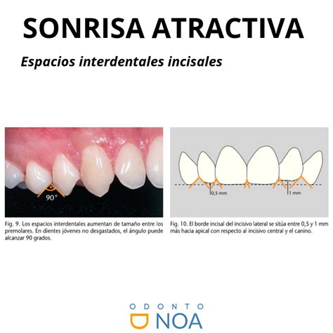 El espacio interdental incisal es más grande entre el incisivo lateral y el canino. En las mujeres, este triángulo tiende a ser más redondeado, ensanchándose hacia el canino. Los dientes son cada vez más grandes hacia la zona de los dientes posteriores, y el ángulo en el punto de contacto alcanza casi los 90 grados entre los caninos y los premolares. Estos puntos de contacto y espacios interdentales incisales son importantes para una sonrisa de aspecto juvenil. Cuando los bordes incisales se desgastan con la edad, los puntos de contacto desaparecen progresivamente, dando un aspecto envejecido a la sonrisa.