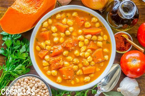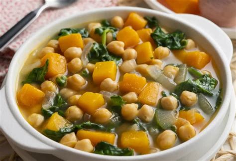 ¡A disfrutar de este Guiso de garbanzos, calabaza, espinacas con chorizo y jamón!