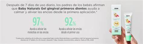 - Aplicación: Aplica una pequeña cantidad de gel sobre la yema del dedo y extiéndelo suavemente sobre las encías del bebé mediante un suave masaje.