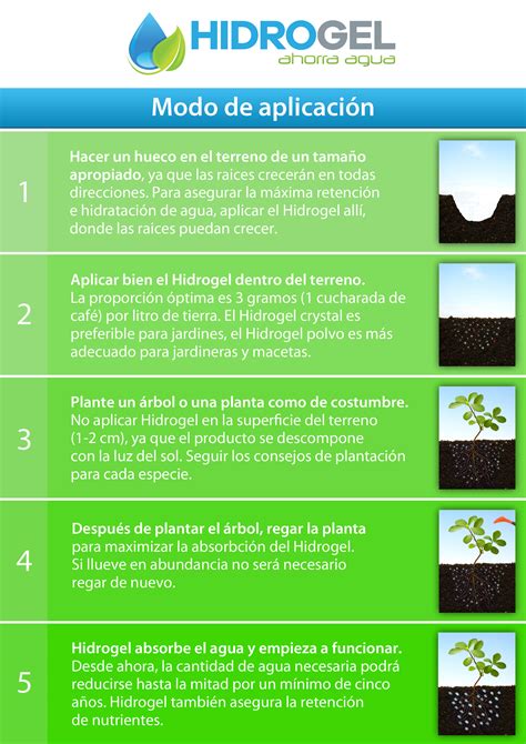 Tras la aplicación, el hidrogel debe ser incorporado en el suelo a una profundidad mínima recomendad de 10-15 cm antes de la siembra o el transplante.