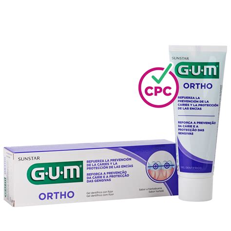 - GUM® Ortho gel dentífrico: Se trata de un producto antiplaca diseñado para reforzar la prevención de la caries y proteger las encías sensibles en personas que llevan aparatos de ortodoncia. Esta pasta dentífrica posee una excelente fórmula con las siguientes características: