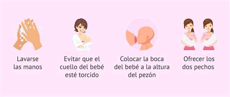 - Buena postura y agarre: Asegurarse de que el bebé tenga todo el pecho en la boca, como si comiera una hamburguesa.
