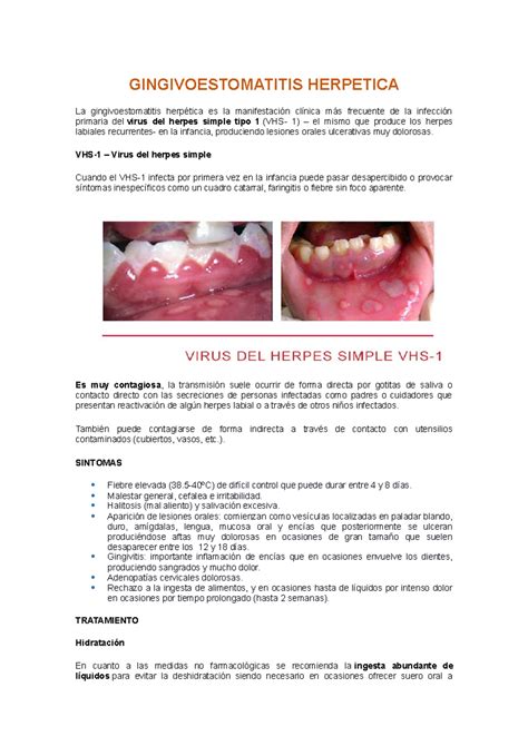 La gingivoestomatitis herpética es una infección que afecta la boca y las encías, provocando úlceras e hinchazón. Esta condición puede ser bastante dolorosa e incómoda, especialmente en niños. Es una manifestación clínica frecuente de la infección primaria por el virus herpes simple (VHS) y es muy común en lactantes y niños pequeños, con una incidencia máxima entre 1 y 3 años, aunque puede aparecer a cualquier edad.