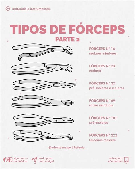 - Fórceps de extracción: Son los más comunes y versátiles. Están diseñados para agarrar los dientes y extraerlos con firmeza. Vienen en varios modelos, adaptados a diferentes tipos de dientes.