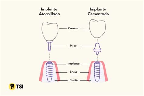 Una forma de clasificar los implantes es según cómo se fija la prótesis (corona) al implante en sí. Existen dos tipos principales: