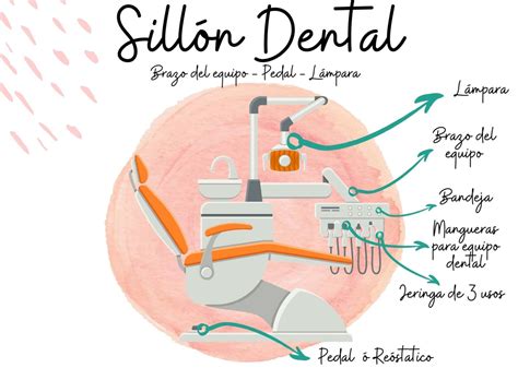El sillón dental debe ser ergonómico para facilitar el trabajo entre el equipo de profesionales y permitir varias posiciones para adaptarlo a cada tratamiento, necesidad y paciente. La unidad dental está compuesta por diferentes partes, como el sillón, el respaldo, el cabezal, la bandeja porta instrumentos, la jeringa, la manguera y el pedal, entre otros.