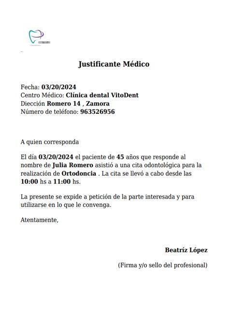 Un justificante dental es un documento emitido por un dentista o clínica dental que certifica que un paciente ha asistido a una cita o ha recibido tratamiento dental en una fecha y hora específicas. Este documento es crucial para justificar ausencias laborales o escolares.