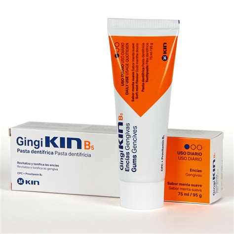 GingiKIN B5 es una línea de productos de la marca KIN, específicamente diseñada para el cuidado de la salud bucodental. Incluye tanto pasta dentífrica como enjuague bucal, ambos formulados con ingredientes que ayudan a prevenir la caries, fortalecer el esmalte dental y cuidar las encías.