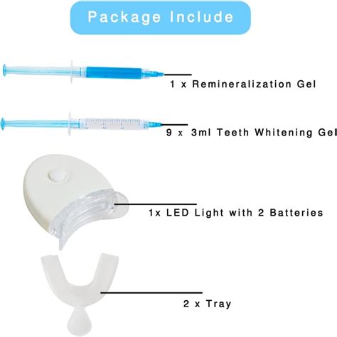 - Kits de blanqueamiento con luz LED: Estos kits suelen incluir un gel blanqueador y una lámpara LED que acelera el proceso de blanqueamiento.