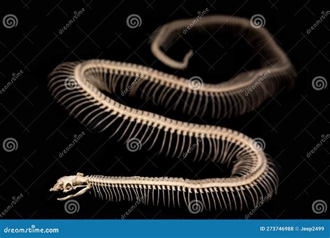 Esqueleto de serpiente mostrando la columna vertebral y las costillas.
