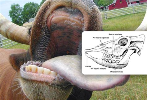 Para determinar la edad sólo nos interesa el maxilar inferior, donde se encuentran los dientes incisivos. Los bovinos tienen 8 incisivos; los dos del medio reciben el nombre de pinzas o palas.
