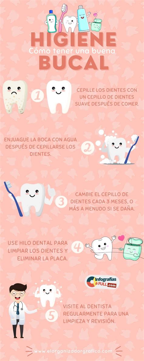 - Mejorar la higiene bucal: Es importante cepillarse los dientes al menos dos veces al día con un cepillo suave y un enjuague bucal fluorado para limpiar los residuos de alimentos y prevenir la acumulación de placa bacteriana.